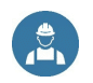 - Hjelm med tydeligt korrekt navn og firmanavn forsynet med et mærkat “Sikkerhed i arbejdet”, hvis det er en ekstern.