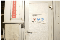 Gå ind i slaggekransbetjeningsrummet og start kranen. Kranen kan kun starte, hvis den er positioneret over slaggesiloen inden start.