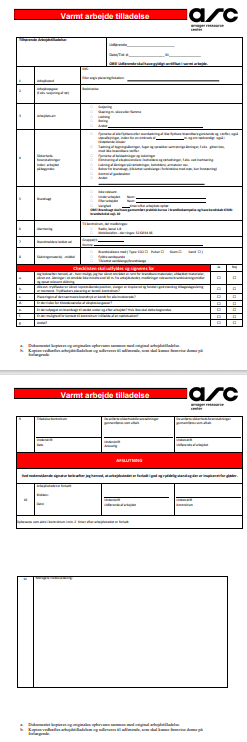 For at sikre at varmt arbejde udføres sikkert og i overensstemmelse med gældende love og regler, skal følgende fremgangsmåde følges for at opnå tilladelse: